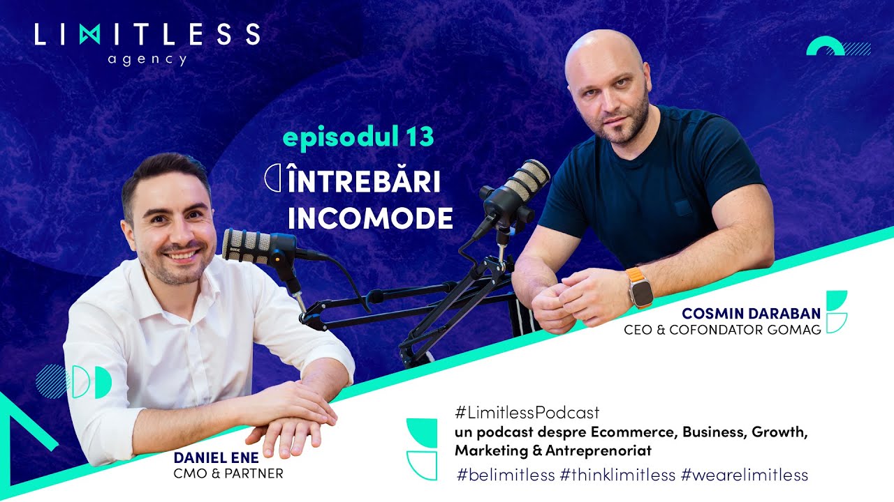 Salutare și ne bucurăm foarte tare să ne revedem la un nou episod din podcastul Limitless-agency numit [00:01:00] întrebări incomode. Astăzi avem alături de noi un om foarte activ în zona de e-commerce din România și pe zona de digital marketing, și anume Cosmin Daraban, care este CEO și co-fondator la Gomagg, o platformă SaaS pentru magazine online.